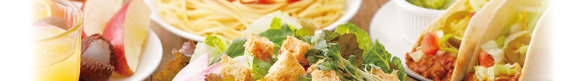 旬の野菜をはじめフレッシュなデリサラダ、スープ、フルーツ、パスタ、タコス、デザート、ドリンクなど